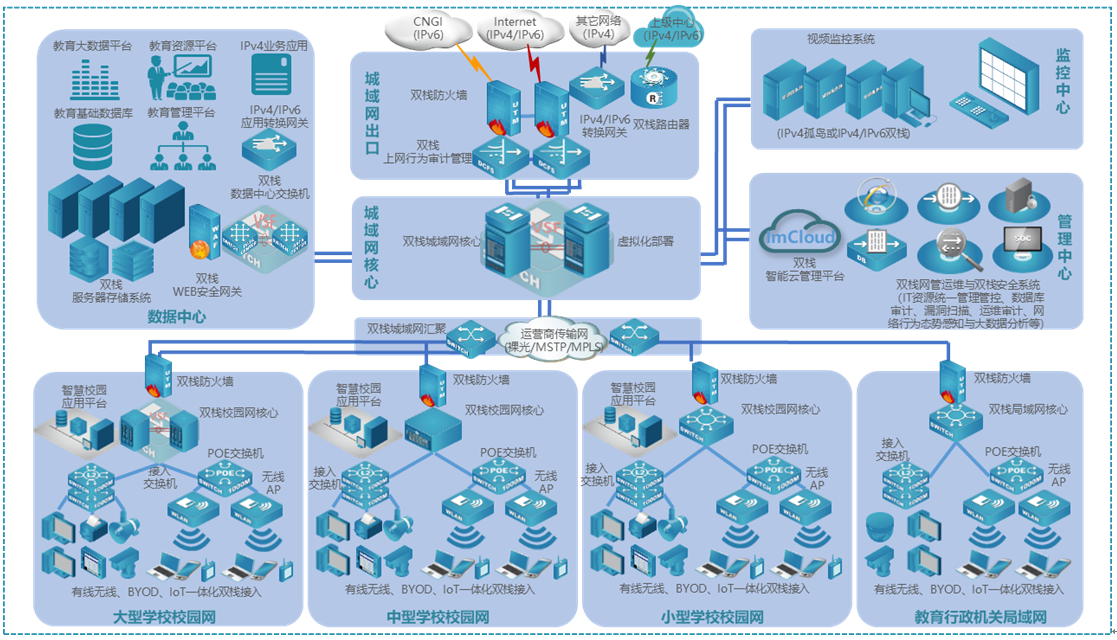 IPv6教育城域网主要建设内容分为以下四个方面: