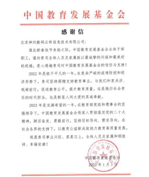 近期,710公海赌赌船官网收到中国教育开展基金会的感谢信,以感谢710公海赌赌船官网2022年在职业教育领域的贡献和实践,尤其是在全国职业院校大赛(中高职组)中对大赛顺利召开所付出的努力。